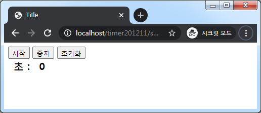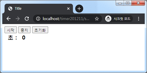 먼저 첫번째로 순번 1(setInterval())과 3(cearInterval())을 사용하여 간단한 초시계를 만들어보겠습니다.